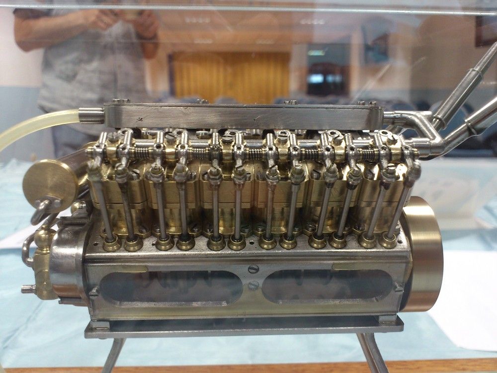 El pasado 1 de Abril acudí a una exposición de minimotores que resultó ser mucho mas interesante de lo esperado al contar con la presencia del creador de estas obras de arte, José Manuel Hermo Barreiro (motores Patelo). Entre estas maravillas se encontraba el que posiblemente sea el V12 mas pequeño del mundo. Tiene una cilindrada de 12 cc y funciona con aire comprimido para no contaminar y poder exponerse en sitios cerrados.