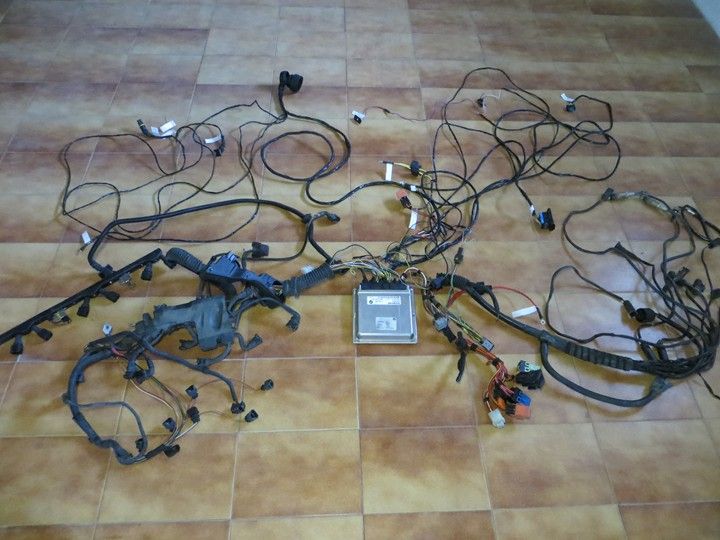 Recopilando los distintos ramales del cableado motor del M3 e46, centralita, pedal electrónico y todos los sensores.