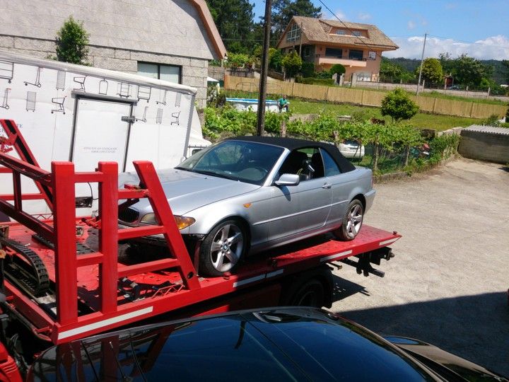 La llegada del 330 tras mas de 1.000 km en grúa.